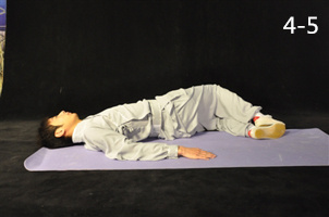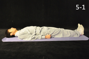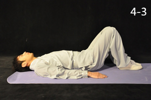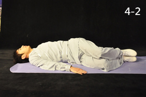 動(dòng)作4:伸膝呈仰臥位,雙手置于體側(cè),手心向下(圖4-4)。