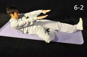 該套功法共分七節(jié),依次為“足跟相對(duì)身端坐”“前推后坐腎府活”“撐臂頭仰腰反縮”“屈膝側(cè)轉(zhuǎn)身仰臥”“握固翹趾滯氣挪”“頭起足翹手欲捉”“手固丹田壯真火”。