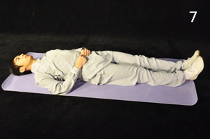 動(dòng)作2~3反復(fù)操作3~5次,恢復(fù)至仰臥位。雙手置于體側(cè)。