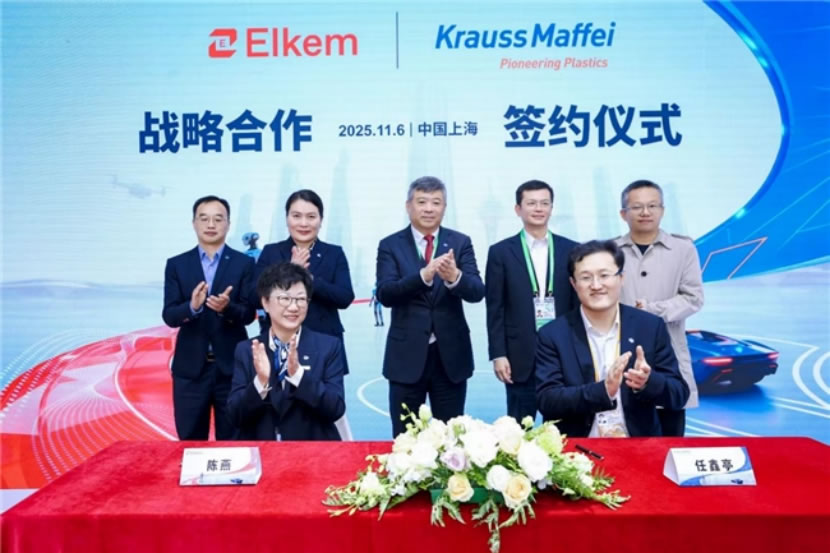 戰(zhàn)略簽約,攜手克勞斯瑪菲打造創(chuàng)新產(chǎn)業(yè)鏈生態(tài)在本次展會中,埃肯與全球橡塑機械制造領域的智能裝備及解決方案供應商——克勞斯瑪菲正式簽署戰(zhàn)略合作協(xié)議。雙方積極響應中國中化“材料+設備+產(chǎn)品”戰(zhàn)略,致力于構建從關鍵材料、核心裝備到高端產(chǎn)品的創(chuàng)新產(chǎn)業(yè)鏈生態(tài),通過協(xié)同優(yōu)勢,共同推進雙方在新能源汽車、高端醫(yī)療、電子等市場的布局與創(chuàng)新。